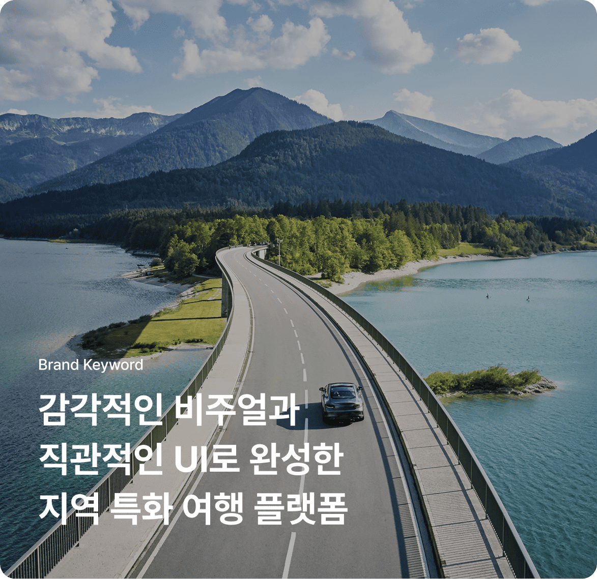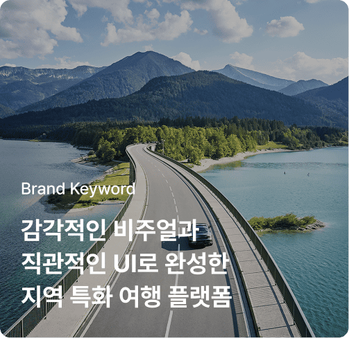 ‘여행의 즐거움 + 지역의 스토리’를 핵심 콘셉트로, 생동감 있는 비주얼과 사용자 중심 구조를 통해 브랜드의 활력과 신뢰감을 시각적으로 표현했습니다.